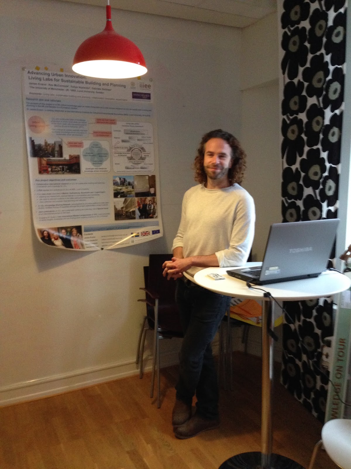 The pictures below show James Evans presenting on urban sustainability and living labs to researchers at Lund University on 19 November 2014. James is a Visiting Researcher at Lund University over 2014-2016 as part of the project "Advancing Urban Innovation: Living Labs for Sustainable Building and Planning". This partnership between Manchester University and Lund University closely connects with the GUST project.