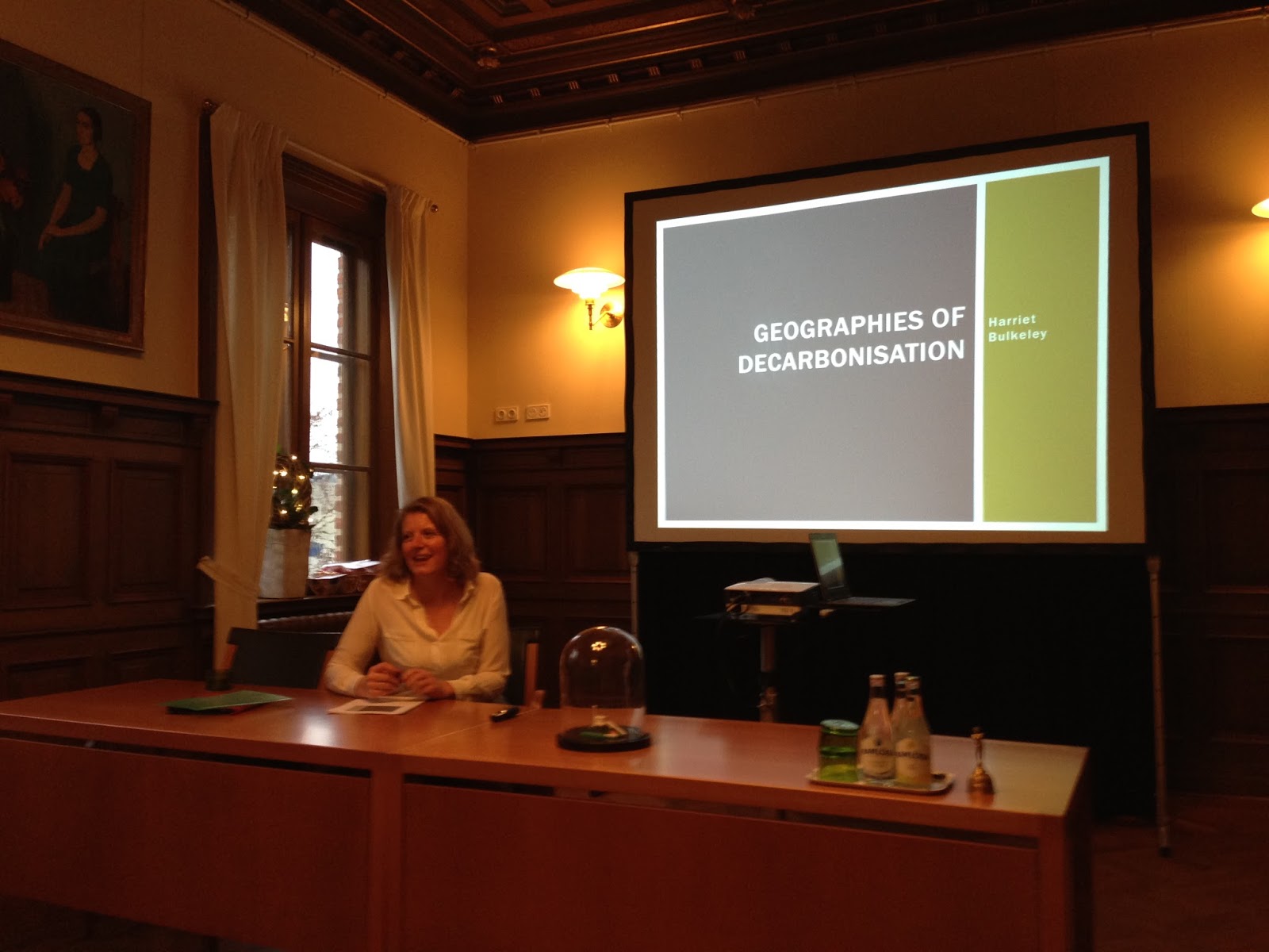 “Destination Decarbonisation” the event involved presentations by Prof. Harriet Bulkeley on the geographies of decarbonisation, Prof. Annica Kronsell (member of the GUST team) on decarbonisation and the green state, and Kes McCormick (project coordinator for GUST) on decarbonisation and urban living labs. The pictures below show Harriet and Kes presenting at the event.