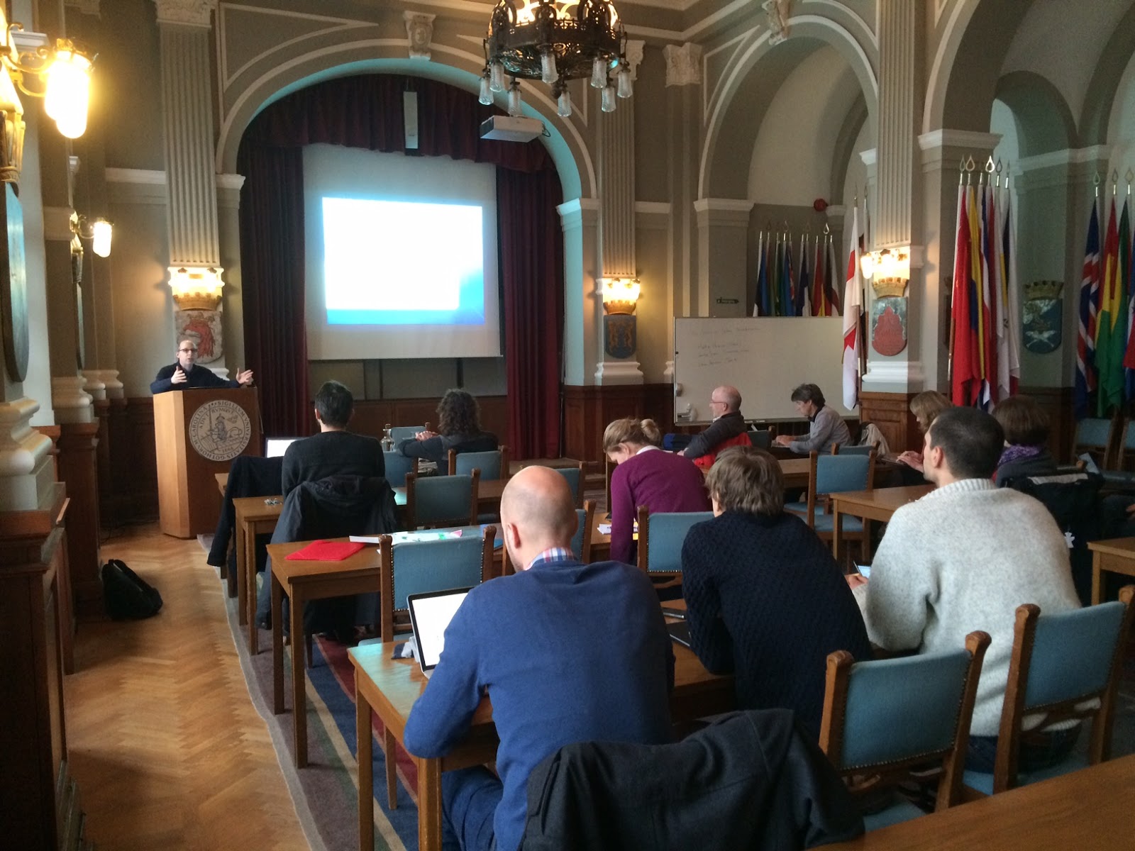 This seminar on 14 January 2015 explored these issues within the urban context and the ways decarbonisation is subject to new forms of politics. The key speakers included Matthew Paterson (University of Ottawa), James Evans (University of Manchester), and Steven Bernstein (University of Toronto). James is a Visiting Researcher at Lund University and a member of the international advisory board for GUST. The pictures below show James, Matt and Steven in discussions and the presentations.