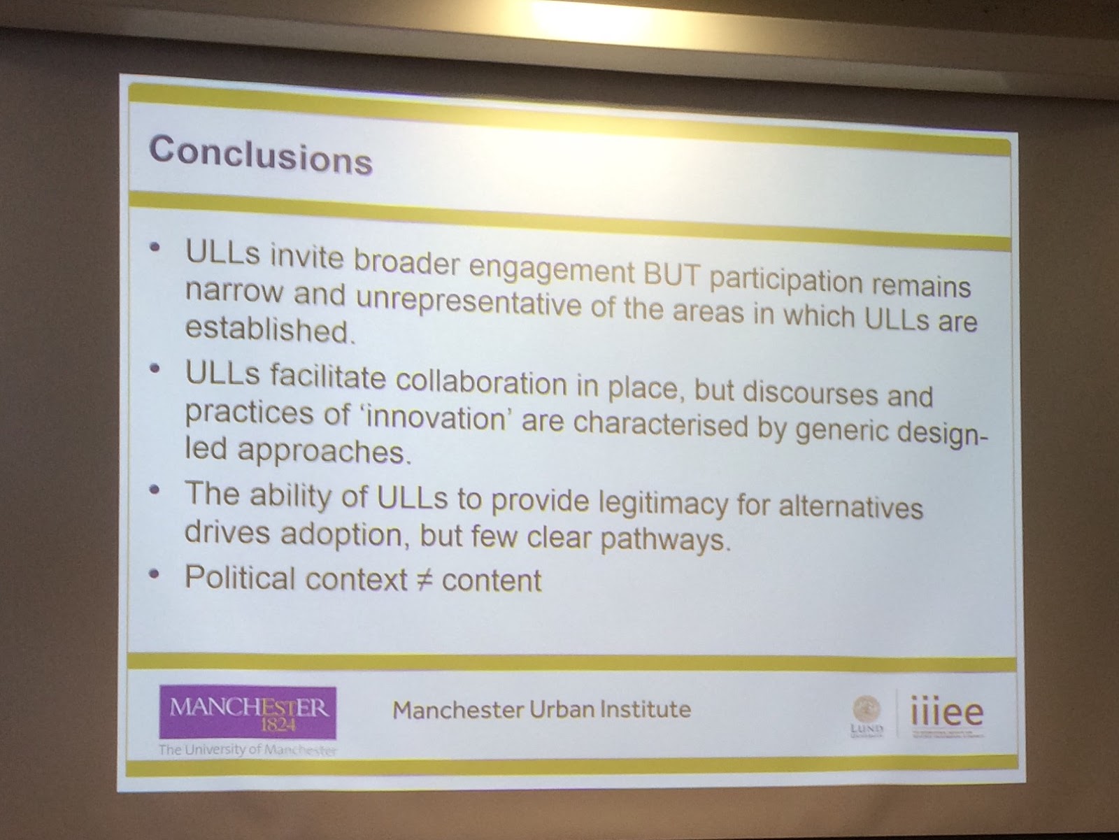 On 1 December 2016, Kes McCormick presented some findings from the GUST project at the Sustainable City Development conference in Malmö, Sweden. Urban Living Labs (ULLs) have emerged as an approach to experimentation